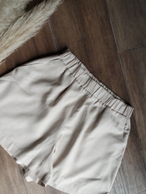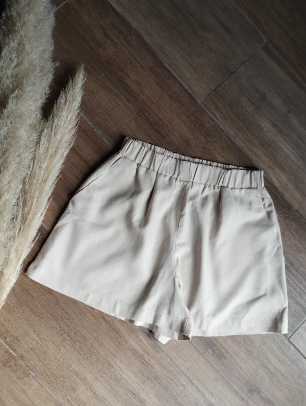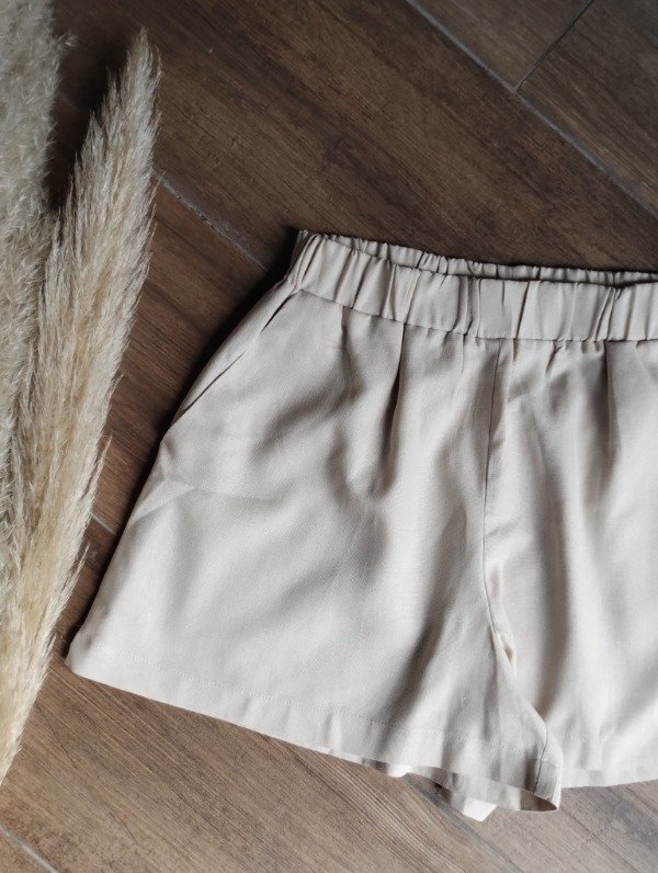 Short de lino, con bolsillos laterales, ruedo ancho de 3 cm y elástico en todo el contorno de la cintura