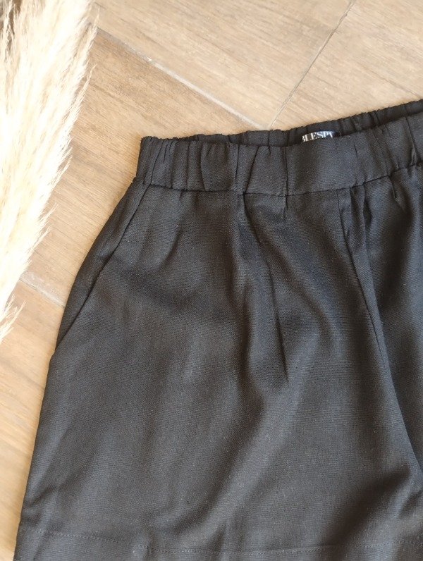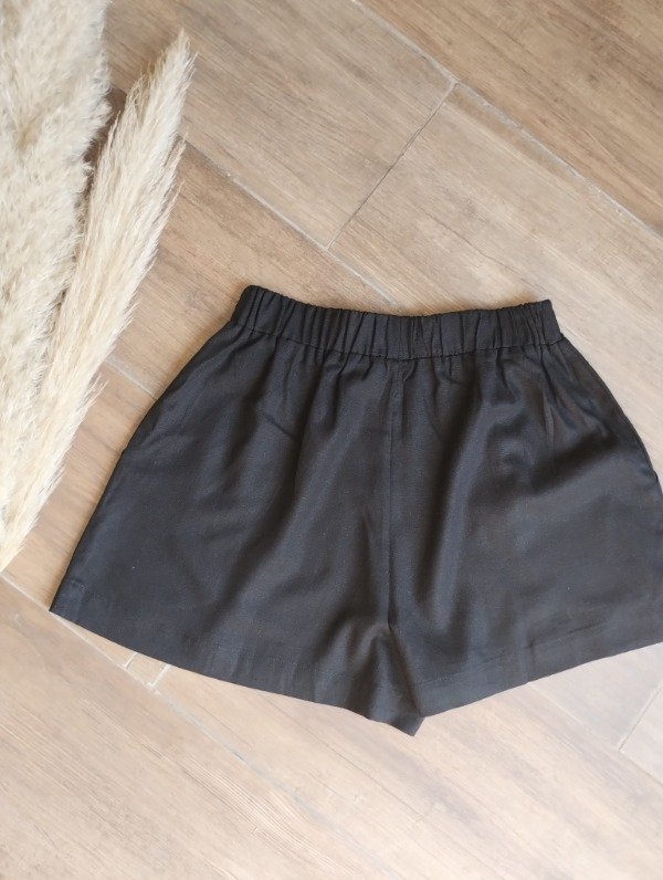 Short de lino, con bolsillos laterales, ruedo ancho de 3 cm y elástico en todo el contorno de la cintura
